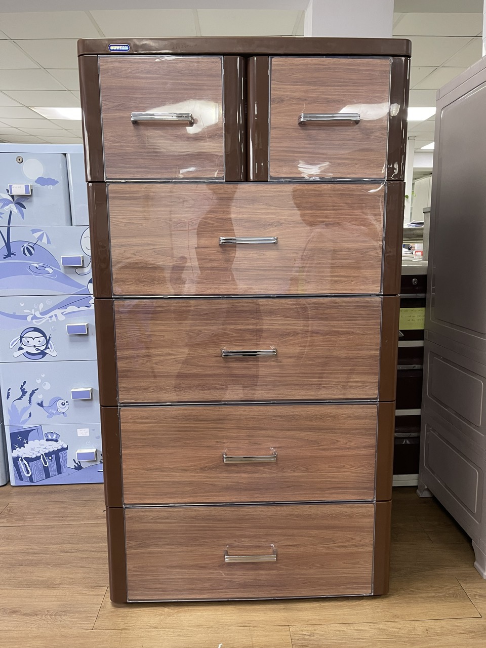 Tủ nhựa Duy Tân Tabi L là dòng sản phẩm tủ nhựa Cao cấp có kích thước lớn nhất của Duy Tân, mặt tủ có ốp Meca và có khóa ở 2 hộc trên với rất nhiều thiết kế rất đẹp và sang trọng.